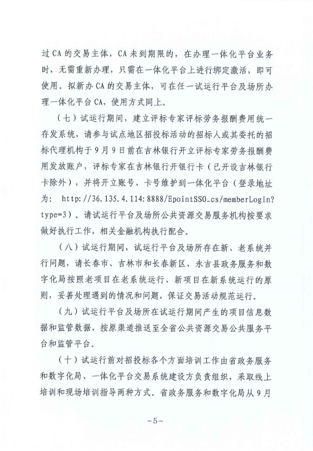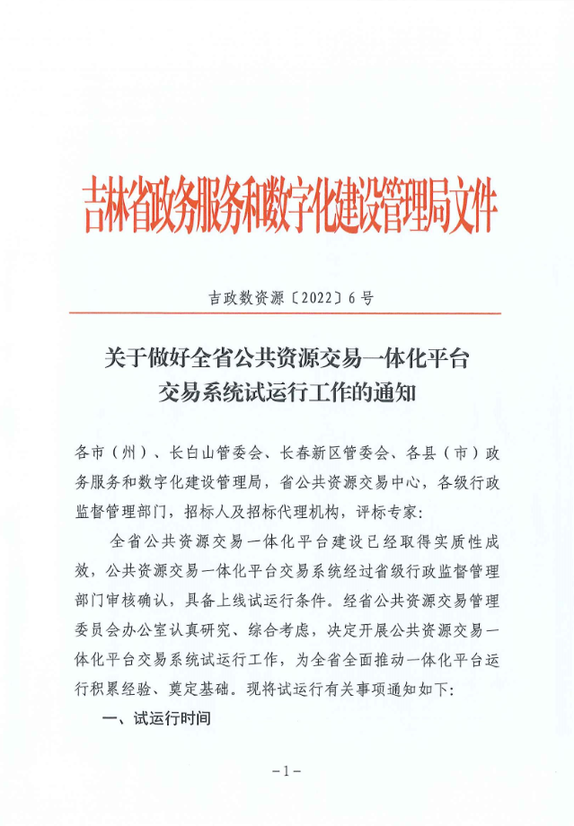 关于做好全省公共资源交易一体化平台交易系统试运行工作的通知