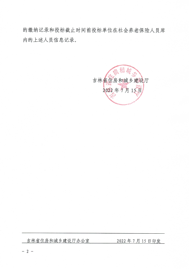 吉林省住房和城乡建设厅关于现阶段招标文件设置社会养老保险证明材料要求的通知