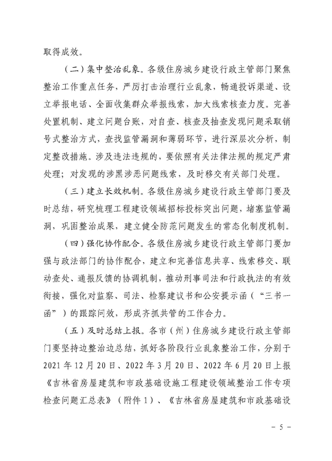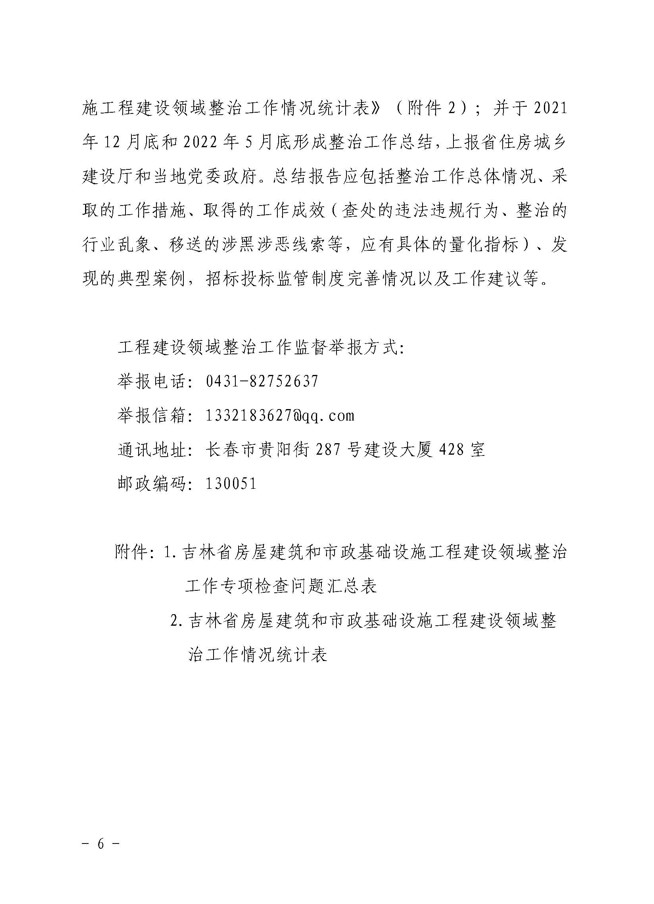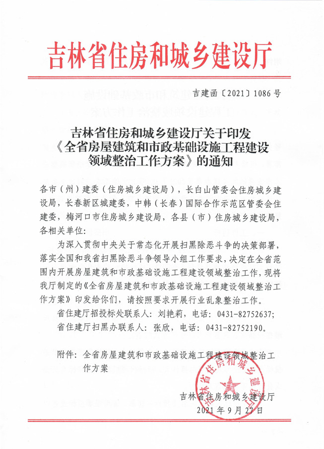 吉林省住房和城乡建设厅关于印发《全省房屋建筑和市政基础设施工程建设领域整治工作方案》的通知